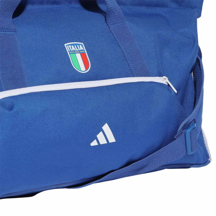 Defiende tus colores con orgullo. Esta bolsa de deporte adidas luce el blanco y azul de la selección de fútbol italiana y su emblemático escudo. Cuenta con un amplio compartimento principal y diferentes bolsillos para mantener tus cosas bien organizadas. La correa ajustable te permite llevarla colgada del hombro cuando te canses de llevarla por las asas de mano.