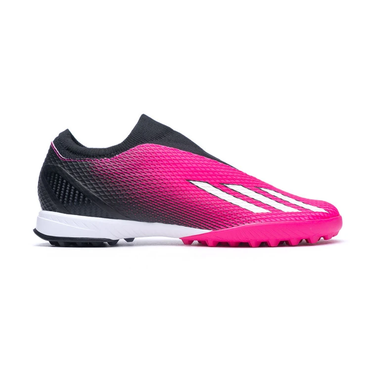 Zapatilla de fútbol adidas X Speedportal .3 Turf para adultos. Zapatillas de microfibra sintética sin cordones para utilizar en campos de moqueta, césped artificial, cemento o tierra. Zapatillas de gama baja en color Shock Pink-Zero Metallic-Black.