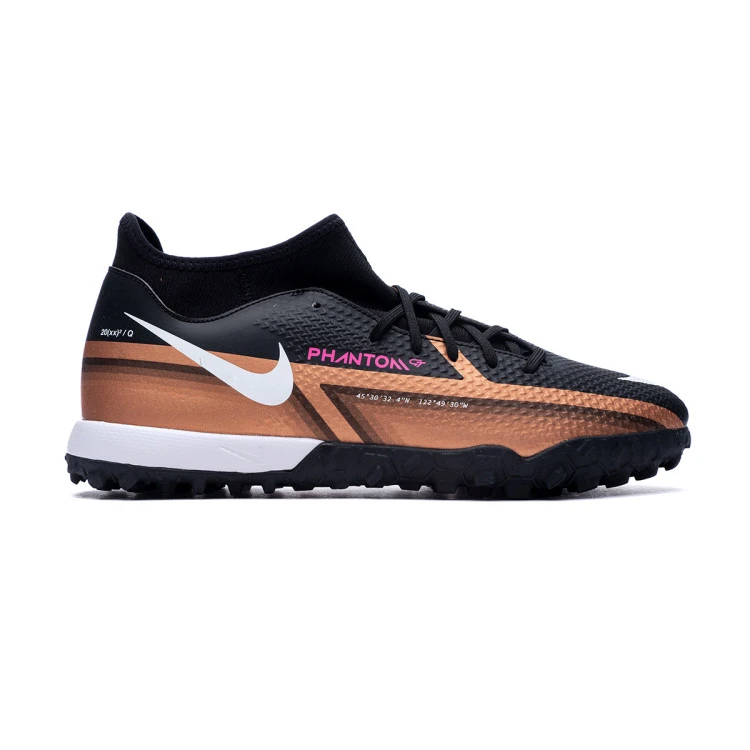 Bota de fútbol Nike Phantom GT2 Academy DF Turf para adultos. Bota de hilo con calcetín, para utilizar en campos de hierba artificial de última generación. Botas de gama media para jugadores de control y precisión en color Metallic Cooper