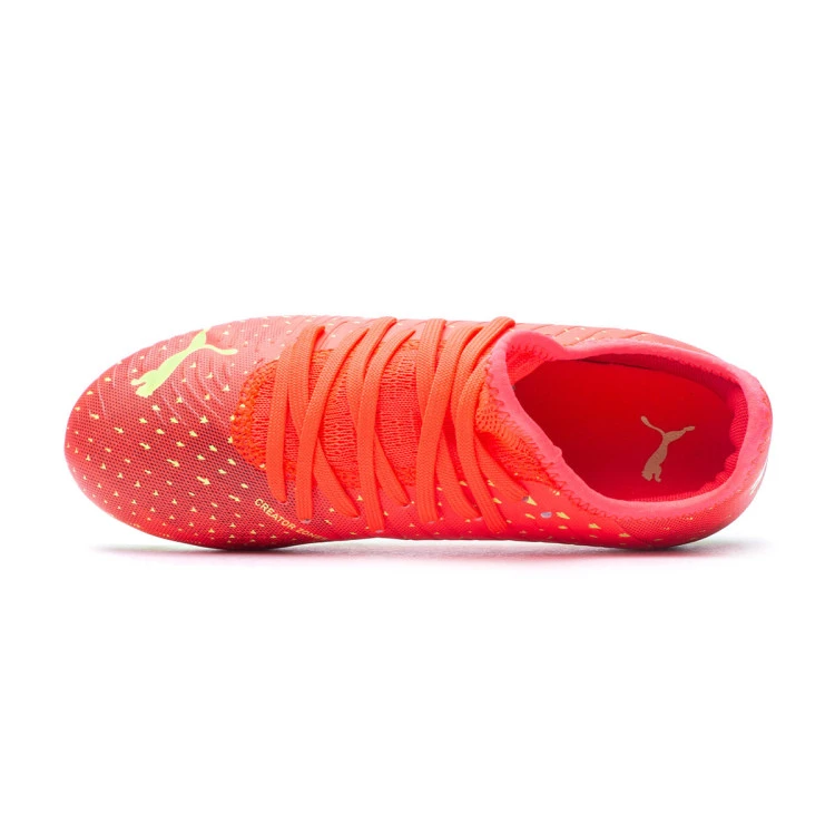 Botas de fútbol Puma FUTURE 4.4 FG/AG para niños. Botas sintéticas, para utilizar en campos de hierba natural seca o en campos de hierba artificial de última generación. Botas de gama baja en color Fiery Coral-Fizzy Light-Puma Black-Salmon