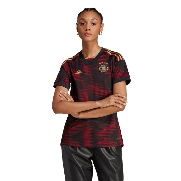 Camiseta de la segunda equipación de la Selección Alemana durante la World Cup 2022. No dejes de soñar. Por muchos éxitos que haya cosechado en el pasado, la selección alemana no cesará en su empeño de conquistar nuevos trofeos. Esta camiseta adidas, luce los colores de la bandera germana y una serie de letras «»D»» de «»Deutschland»» con efecto difuminado. Creada para ofrecer la máxima comodidad a la hinchada, se ha confeccionado en un tejido transpirable AEROREADY con los detalles del equipo cosidos.