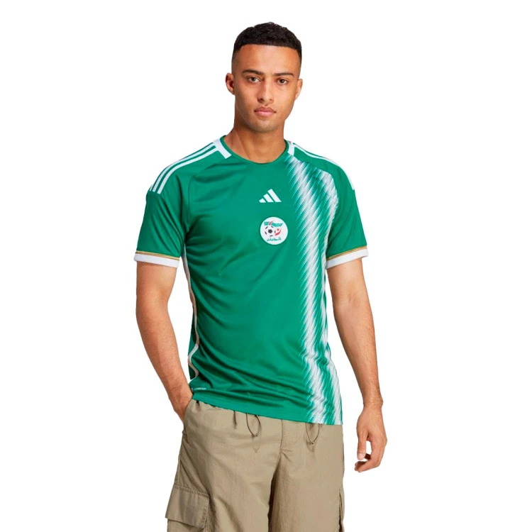 Mira al futuro y rinde homenaje al pasado. Esta camiseta de fútbol adidas rinde homenaje a la segunda equipación de la selección argelina con un estampado de rayas laterales con efecto difuminado. Las inserciones de malla bajo las sisas mejoran la ventilación. El tejido transpirable AEROREADY mantiene la piel seca durante todo el partido.