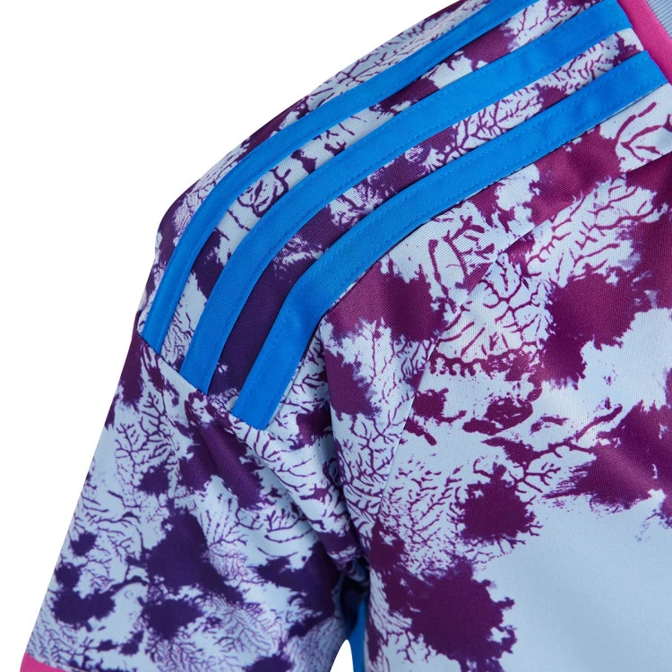 Ayuda a preservar nuestro amado planeta azul con un estilo colorido. Inspirada en los arrecifes de coral del sur de Europa y la región de Australasia, esta camiseta adidas de la segunda equipación de la selección española femenina permite a sus jóvenes hinchas exponer la difícil situación de los océanos en la máxima competición futbolística del mundo. La tecnología transpirable AEROREADY y los paneles de malla te aportan una comodidad y ventilación óptimas mientras animas a tu equipo favorito. El escudo cosido completa este look llamativo.