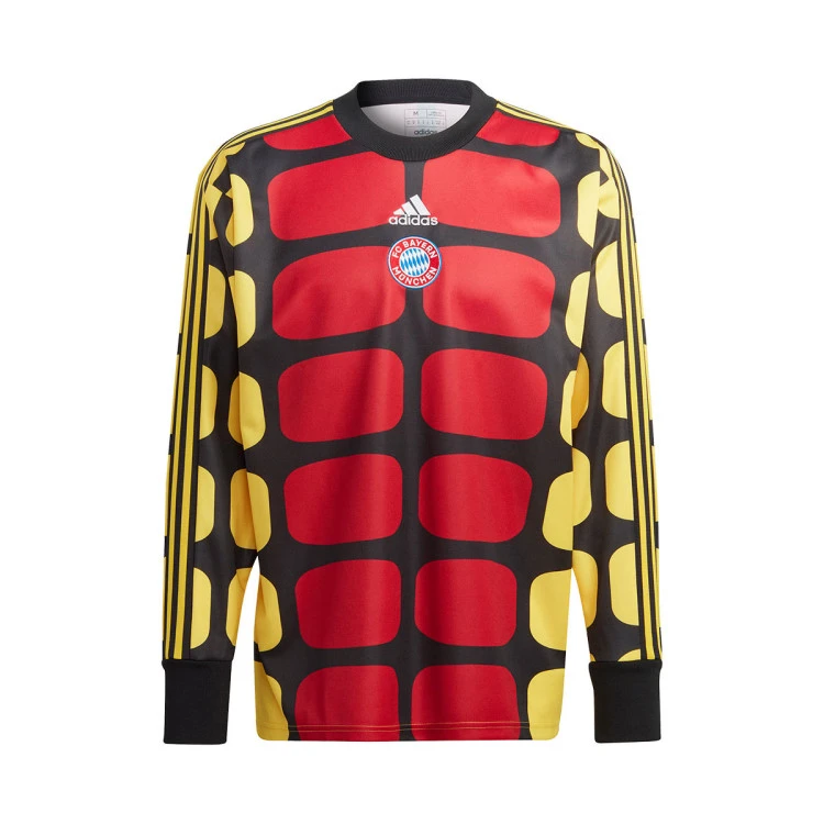 Disfruta de las vibraciones de mediados de los 90 con esta camiseta retro de portero adidas FC Bayern. Asociada para siempre con actuaciones titánicas entre palos, esos gráficos inspirados en Predator te asegurarán que destaques cada vez que te la pongas. Otro elemento clásico de los 90, la camiseta suelta El escudo del club, bordado en el centro del pecho, completa un estilo futbolístico que seguramente reavivará algunos recuerdos preciados.