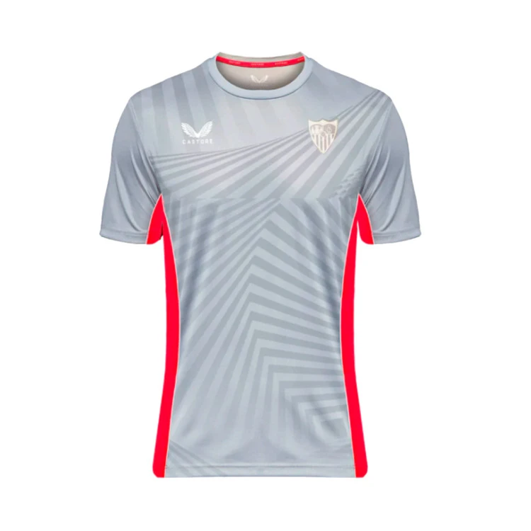 Camiseta manga corta de training del Sevilla FC para la temporada 2022-2023 en color gris, marca Castore.