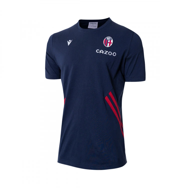 Camiseta de manga corta para animar al Bologna FC de la marca Macron en color azul oscuro.