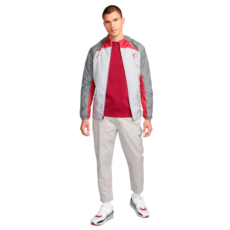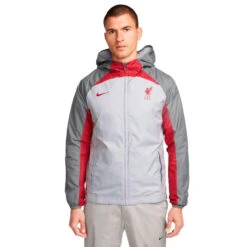 La chaqueta AWF Liverpool FC, diseñada para condiciones meteorológicas impredecibles, es una prenda ligera perfecta para los días en los que quieres jugar bajo la lluvia sin empaparte.