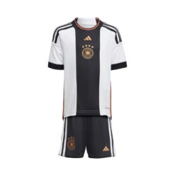 El equipamiento perfecto para correr y saltar por el parque o el jardín. Este miniconjunto adidas para futuras promesas luce el diseño con la franja frontal en contraste de la primera equipación de la selección de Alemania. Consta de una camiseta, un pantalón corto y unas medias de fútbol para que tu pequeño forofo demuestre su apoyo incondicional. Su tejido suave y transpirable AEROREADY mantiene la piel fresca y seca mientras se inicia en el fútbol.
