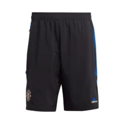Sesiones de entrenamiento. Viajes. Partidos. Este pantalón corto adidas con detalles del Manchester United se ha diseñado para los momentos de descanso entre todas esas actividades. Su tejido técnico con tecnología transpirable AEROREADY y bolsillos con cremallera lo convierten en una prenda cómoda y práctica.
