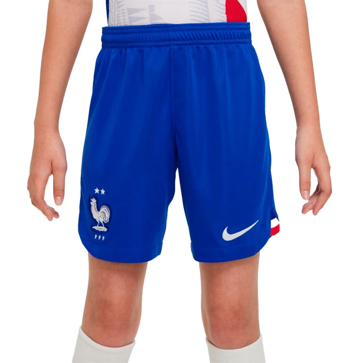 Pantalones cortos Segunda Equipación de la Selección Francesa para niño y para el mundial Qatar 2022. Al igual que otros shorts de la colección Nike Stadium, estos combinan detalles de diseño de réplica con tela absorbente de sudor para brindarte un look listo para el juego inspirado en tu equipo favorito.
