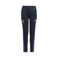 Confía en tu equipo dentro y fuera del terreno de juego. Este pantalón de entrenamiento adidas para jóvenes promesas combina el estilo ganador del Real Madrid con la tecnología transpirable AEROREADY que mantiene la piel seca. Presenta un corte ajustado que favorece la libertad de movimiento y puños con cremallera para poner y quitar fácilmente. El escudo del club muestra tu pasión por el fútbol.