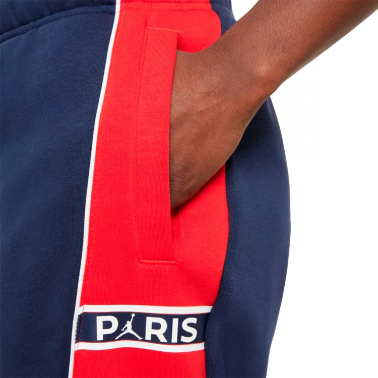 El pantalón de tejido Fleece Paris Saint-Germain está inspirado en el diseño de la primera equipación del club para la temporada 2020-21. Combina la raya estilo Hechter con líneas recortadas que están inspiradas en el mono de Jordan. Este pantalón utiliza un tejido French terry suavemente cepillado con los colores, la insignia y el detalle del ribete del París.